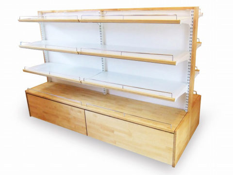 THR- システム両面陳列棚 (木製カバー付き)